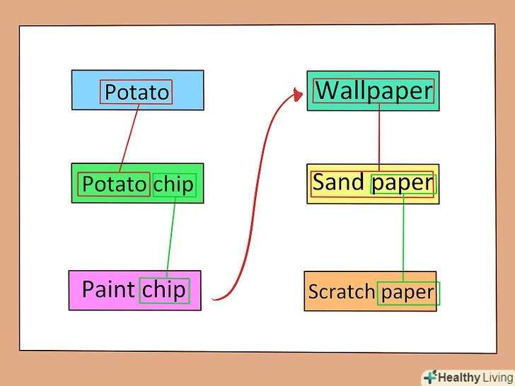 Шукайте аналогії.[19] аналогії-ще один спосіб пошуку несподіваних зв'язків між предметами. Для цього потрібно знаходити неочевидну схожість між предметами або поняттями. Зазвичай це виглядає як»а пов'язано з Б так само, як в пов'язано з Г". Візьміть будь-який предмет і починайте проводити аналогії:- " картопля пов'язана з пюре так само, як дерево пов'язане з папером» (з картоплі можна приготувати пюре, а з деревини можна зробити папір).