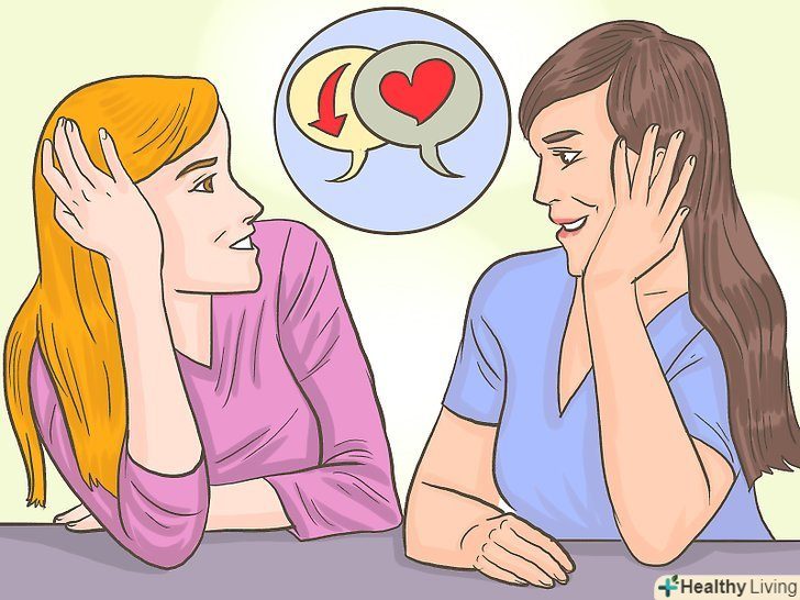 Знайте, що сказати, якщо вас відкинуть.якщо людина не поділяє ваші почуття, вам потрібно буде відповісти йому так, щоб він зрозумів, що ви на нього не зліться. Важливо розуміти, що, ймовірно, відмова не пов'язаний особисто з вами і що відмова — це нормально. Відмови допомагають долати сором'язливість і соціальну тривожність.[6]- "Все гаразд. Тепер, коли я тобі розповіла про свої почуття, мені стало легше. Сподіваюся, ми зможемо залишитися друзями".