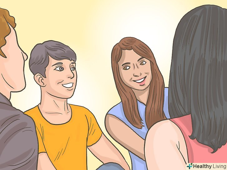 Спілкуйтеся з людьми в групах.якщо вам складно говорити про себе, спілкування в компаніях має допомогти вам.- Люди підтримають розмову, якщо ви не будете знати, що сказати.