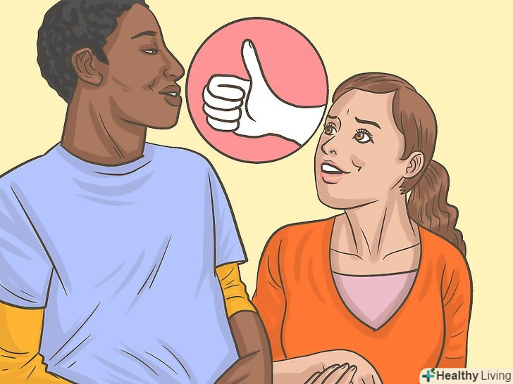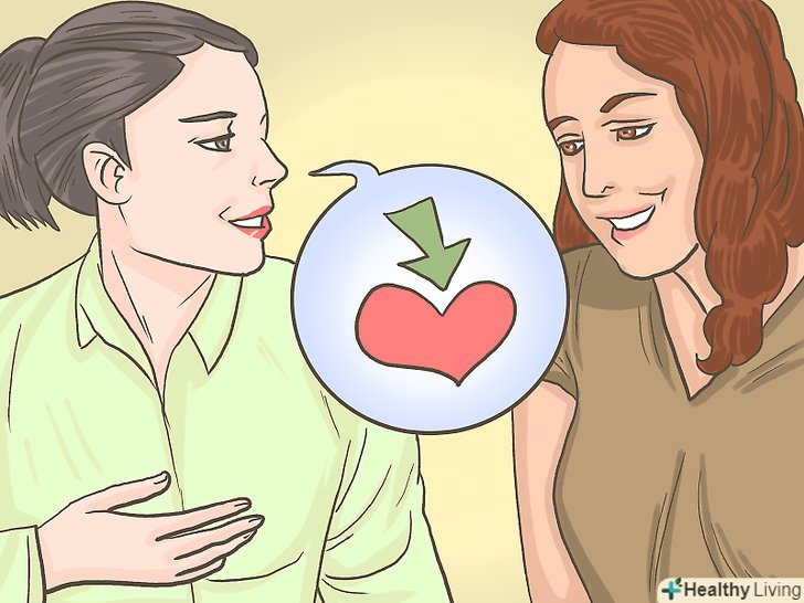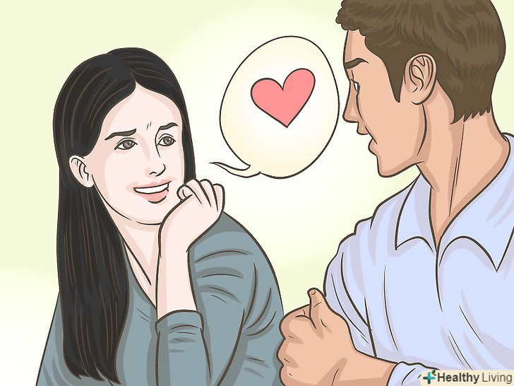 Використовуйте жести.поки будете готуватися до розмови, спробуйте жестами натякнути людині на свої почуття. Жести і міміка допоможуть вам розповісти про свої почуття без слів. Потренуйтеся на одного або близького родича.- Коли розмовляєте з людиною, злегка нахиляйтеся в його бік.