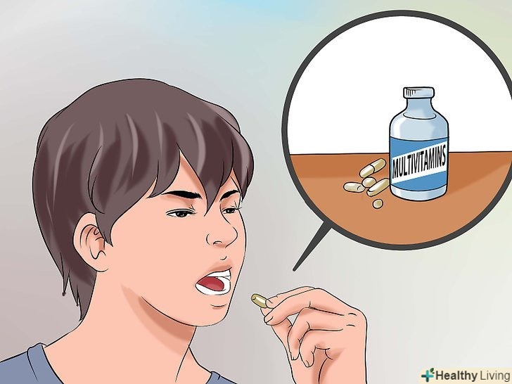 Розвинути-сильну-імунну-системуУкрепляйте імунну систему.ніхто не відчуває себе щасливим під час хвороби. Приймайте полівітаміни, до складу яких входять вітаміни С, Е і А, селен і бета-каротин, і це позитивно відіб'ється на роботі імунної системи.[11]- Міцна імунна система дозволяє більш ефективно реагувати на стрес або фізичні захворювання. Крім того, фізичні вправи, відпочинок, а також здорова дієта мають важливе значення для зміцнення імунітету.