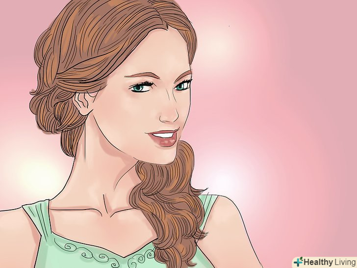 Укладайте волосся.спробуйте різні зачіски, натхненні грецькими або римськими богинями. Підтримуйте природний і здоровий вигляд волосся, використовуючи спеціальну косметику для волосся або натуральні домашні засоби.[6][7]- Для росту більш густого волосся: стимулюйте ваші волосяні фолікули, втираючи злегка нагріте кокосове масло масажними рухами в шкіру голови. Потім оберніть волосся гарячим вологим рушником, щоб підвищити ефективність масла.