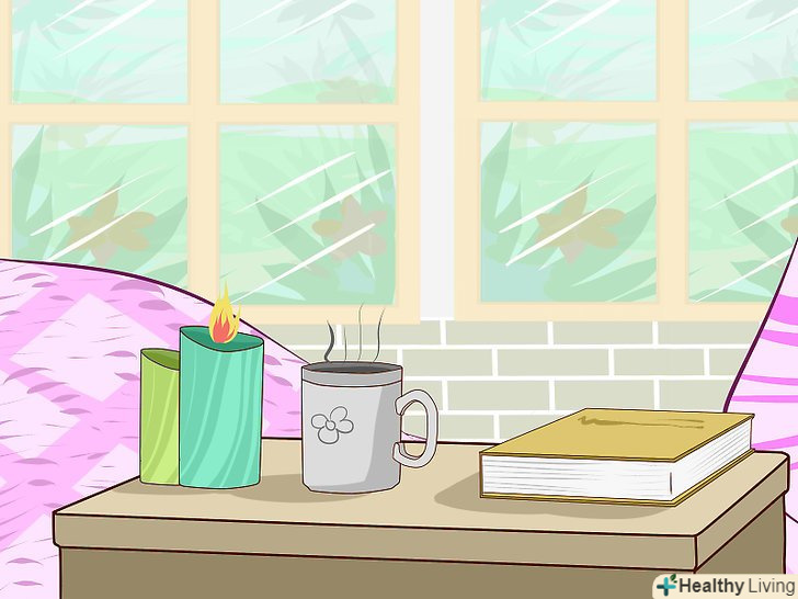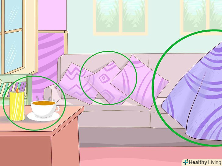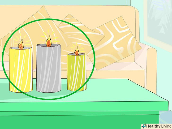 Запаліть побільше свічок, щоб в кімнаті був приємний світло. Світло свічок заспокоює і дає відчуття природності. М'якого світла декількох свічок буде достатньо, щоб висвітлити кімнату відпочинку.[4]- Для створення атмосфери спокою і затишку візьміть ароматизовані свічки з натуральними екстрактами, такими як сосна або кориця.