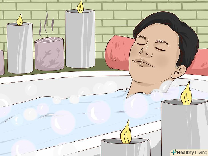 Прийміть заспокійливу ванну.іноді в кінці дня ніщо не заспокоює краще гарячої ванни. Приглушіть світло, а для особливої атмосфери запаліть свічки. Не виходьте з ванни, поки не досягнете почуття глибокого спокою.[14]- Якщо є можливість, почитайте книгу, коли приймаєте ванну. Це допоможе вам знайти душевний спокій.