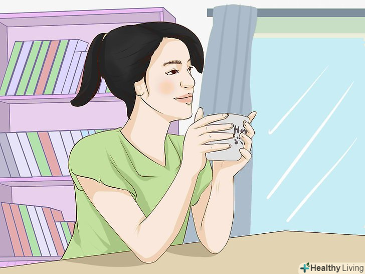 Візьміть улюблену чашку і пийте з неї що-небудь тепле.гарячі напої, такі як чай або гарячий шоколад, зігрівають організм зсередини, допомагаючи розслабитися. Пийте повільно, насолоджуючись смаком і моментом якомога довше.[7]- Протягом дня обов'язково знайдіть час, щоб заварити чай або зварити каву. Уявіть, що це щоденний ритуал, який допомагає вам досягти комфортного стану душі.[8]