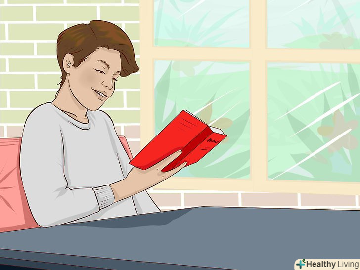 Влаштуйтеся в зручному кріслі і почитайте книгу.на полицю поруч з кріслом покладіть свої улюблені книги. Влаштуйте місце відпочинку поруч з вікном або каміном, щоб у вас завжди було де відпочити від роботи. Дайте собі можливість витягнути ноги і закутатися в теплий плед.[9]- Якщо вам більше подобається читання при природному освітленні, а не під лампою, спробуйте почитати біля вікна або при свічках.