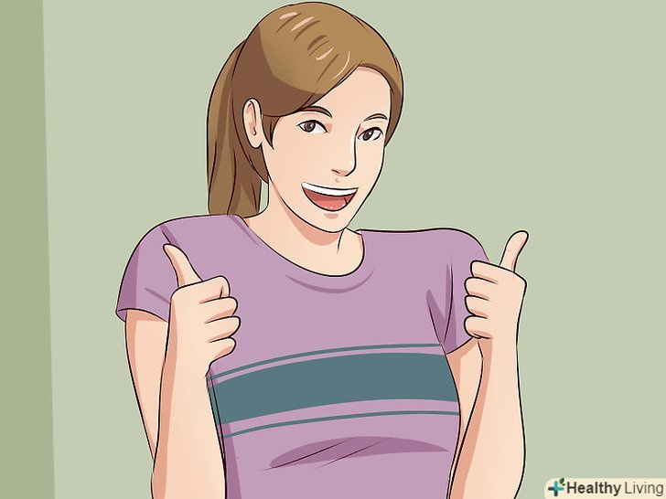 Хваліть себе.хваліть себе за досягнення і за ті позитивні якості, якими ви володієте. Якщо ви пообіцяли собі посміхатися незнайомцям двічі на день, похваліть себе за те, що ви робите світ позитивніше. Можливо, ваша посмішка підняла комусь настрій. Працюйте над собою і визнавайте все хороше, що ви даєте цьому світу.[16]