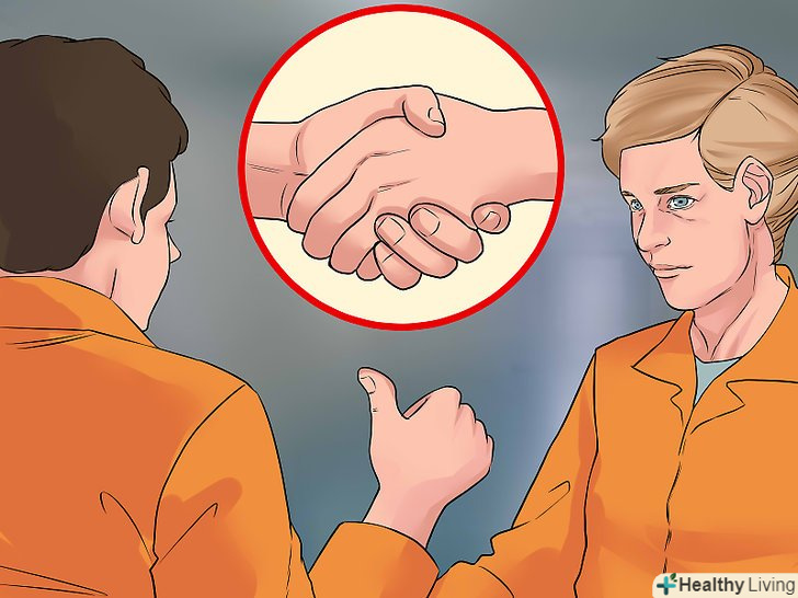 Приховуйте свої емоції. легше сказати, ніж зробити, але намагайтеся не виявляти страху, гніву, щастя або болю. Інші ув'язнені можуть скористатися цим. Простіше кажучи, ваші емоції є вашим найлютішим ворогом, так як вони виявляють вашу слабкість, якою можуть скористатися як ув'язнені, так і охоронці.[16]- Оскільки більшість ув'язнених нудно, вони мають достатньо часу, щоб скористатися своїми маніпулятивними навичками проти вас. Вони постараються спровокувати ваш гнів і зруйнувати ваше щастя.