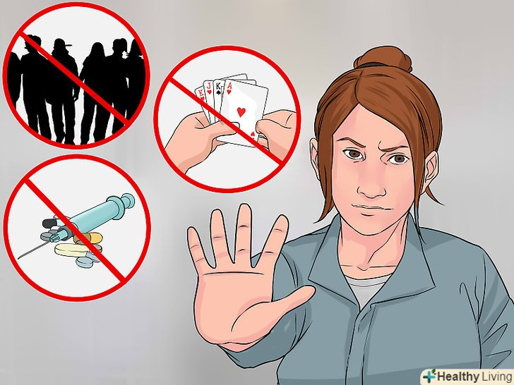 Остерігайтеся банд, наркотиків та азартних ігор.існує поширений міф про те, що для отримання захисту у в'язниці слід відразу приєднатися до банди. Але для отримання цього захисту вам доведеться зробити немислимі речі. В реальності ж приєднання до банди, вживання наркотиків і участь в азартних іграх – це три найпростіших способи померти.[3]- Найчастіше у в'язниці вмирають саме члени банд. Вони також найчастіше беруть участь в бійках і отримують колоті поранення.