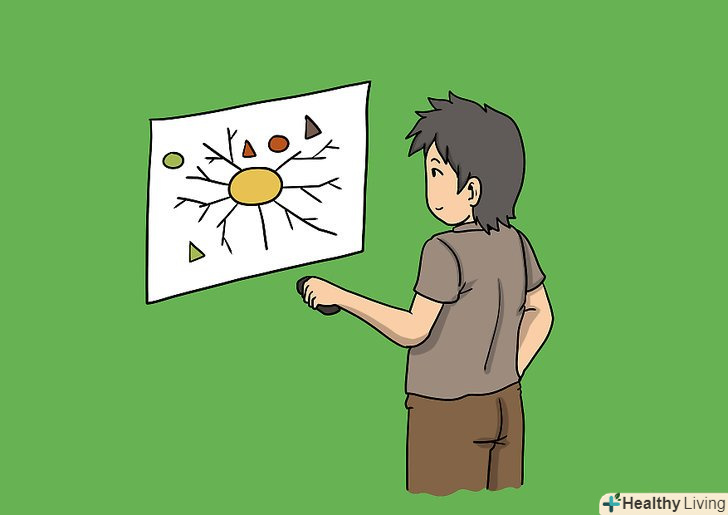 Оцініть переваги інтелект-карти.приблизно 60-65% населення-візуали (люди легше сприймають інформацію візуально). [1]. Це означає, що інтелект-карта, як спосіб візуального сприйняття, підходить більшій частині населення, що вважає за краще бачити як все, включаючи думки та ідеї, знаходить форму. Навіть якщо ви не є візуалом, цей підхід дозволить вам зібрати разом розрізнені думки та ідеї, зрозуміти зв'язки, які до цього були не очевидні. Використовуючи інтелект-карту, як складову частину вашої програми підвищення креативності, досягнення цілей, аналізу проблем і почуттів, ви зможете поглянути на себе по-новому і побачити те, що недоступно при письмовому описі ваших думок і їх подальшому прочитанні і осмисленні. Створення інтелект-карти корисно, також, для тих, хто не має чіткого уявлення про свої цілі і про те, де закінчується проблема і починається її вирішення.- Інтелект-карта дозволяє досягти тієї міри об'єктивності, яка недоступна при використанні інших методів саморозвитку. Працюючи з інтелект-картою, ви будете шукати ключові слова і фрази і пов'язувати їх з іншими словами і фразами. Цей метод сприяє відключенню мислення налаштованого на протоколювання подій, але активізує внутрішнє глибоке мислення, націлене на відображення і викорінення таких неконструктивних явищ, як занепокоєння або песимізм.
