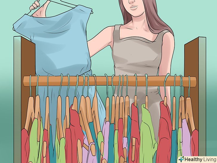 Носіть підлітковий одяг.одяг повинен бути злегка просторою і не дуже приталеною. Не потрібно носити балахони, але одяг, який оголює бюст або відкриває великі ділянки тіла, вам не підходить. Подумайте про те, щоб носити вільні сорочки і блузки, які виглядають легко і жіночно, або носіть вільні сукні.[1]- Якщо вам більше подобається більш "спортивний» або "чоловічий" одяг, вам необов'язково носити сукні або щось жіночне, щоб виглядати мило і невинно. Можна носити сорочки в стилі реглан або вільні милі кофти і молодіжні футболки.