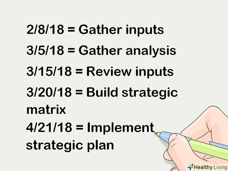 Запросіть на Вашу сесію стратегічного планування всіх зацікавлених осіб. на роботі це можуть бути всі члени керівництва або співробітники вашого відділу. Якщо справа стосується особистих амбіцій, то це можуть бути ваш партнер, батьки або друзі.[2]