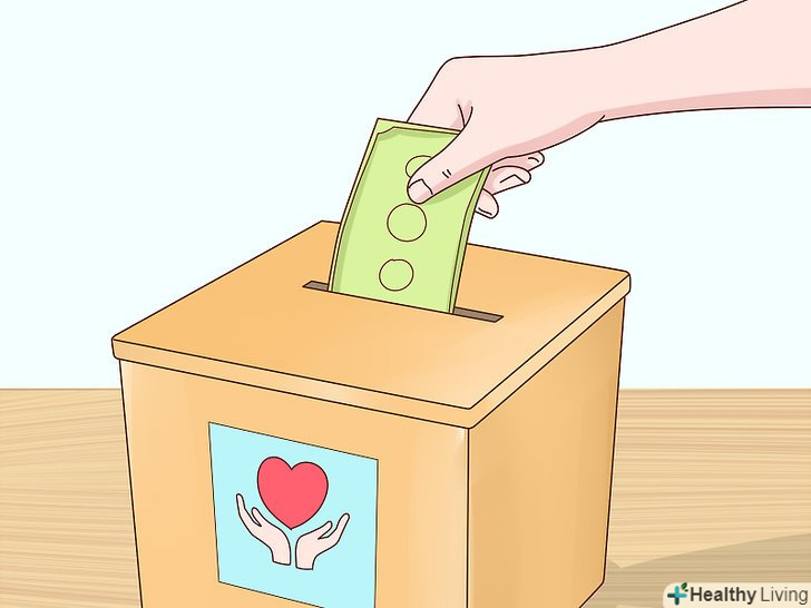 Робіть пожертви.Зв'язок між пожертвуванням та подякою може здатися неочевидним, однак, коли ви даєте свій час або гроші, щоб підтримати будь-яку організацію, або пропонуєте речі (наприклад, їжу для котів для притулку для бездомних тварин), ви висловлюєте подяку за те, що у вас є. Є багато способів участі в благодійності. Можна віддавати свій час, гроші, свої навички або просто приділити пару хвилин одному, якому потрібна допомога. Але пам'ятайте, що години на рік мало. В результаті досліджень вчені прийшли до висновку, що для того щоб відчути ефект від благодійності, їй потрібно займатися регулярно.[20]- Спробуйте стати волонтером в організації, яка вам цікава. Ви зможете подивитися на своє життя іншими очима, Якщо будете працювати з людьми, тваринами або з ситуаціями, які гірше, ніж все, що з вами коли-небудь траплялося.[21]