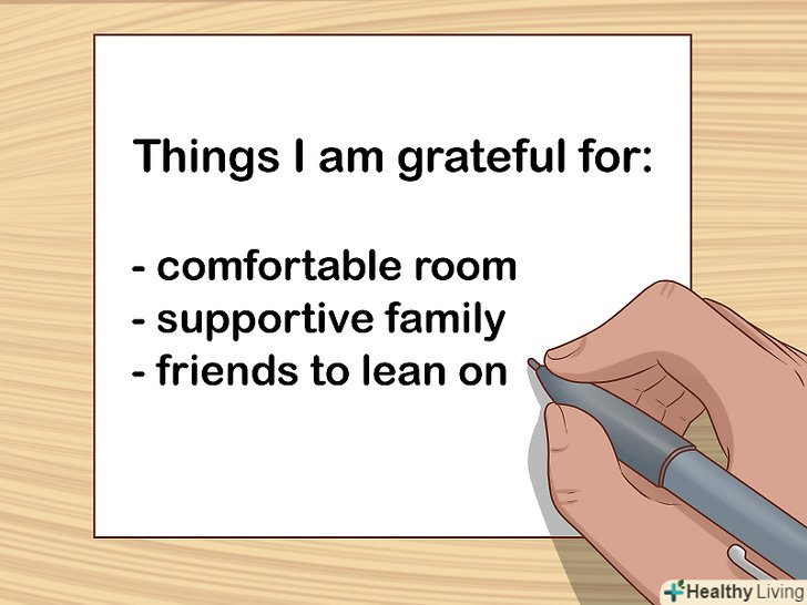 - Розвиток в собі здатності відчувати вдячність нагадує людині, що навіть коли трапляється щось погане або щось складається не так, як заплановано, в житті є хороше.[12] якщо ви перестанете постійно думати про те, що у вас немає всього, чого ви хочете, Ваше життя стане для вас ціннішим.