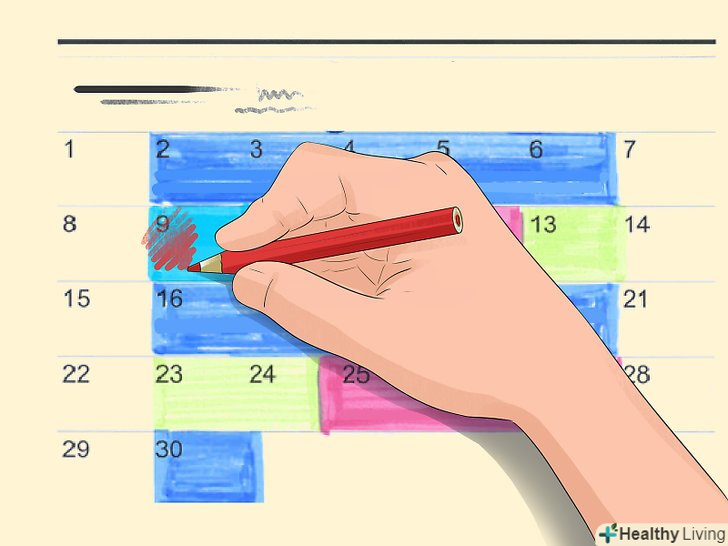 Виділіть пункти і розділи Вашого списку різним кольором.ведення календаря завдань (щоденного, щотижневого і щомісячного) має велике значення для тих, хто бореться з імпульсивністю і хоче виробити у себе звичку концентрувати увагу. Оформляючи свій список / календар завдань, використовуйте різні кольори для різних категорій діяльності.[5]- Наприклад, якщо ви студент, можете відзначати майбутні іспити червоним кольором, синім кольором – довгострокові завдання, чорним – щоденні заняття, а зеленим – час для громадської діяльності.