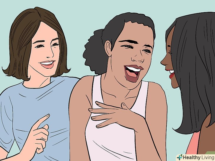 Смійтеся.щирий сміх сприяє виділенню в мозку бета-ендорфінів (гормони щастя).[14] вмійте сміятися, щоб забути про неприємності!- Сходіть на виступ гумористів.