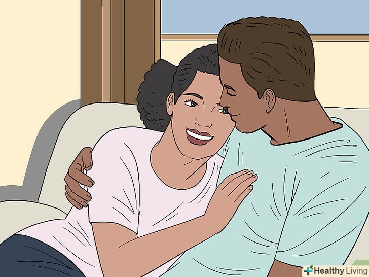 Обіймайте кохану людину.фізичні дотики надзвичайно корисні для психічного здоров'я. Якщо затишно притиснутися до свого партнера, то в організмі підвищується вироблення окситоцину (гормон прихильності). Завдяки цьому ми відчуваємо безпеку, а в організмі знижується рівень кортизолу (гормон стресу).[16]