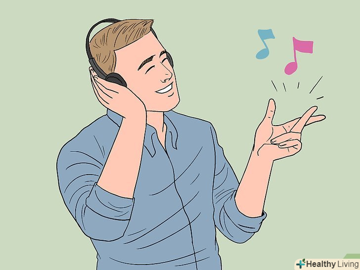Послухайте музику. Музика тісно пов'язана з емоціями. Сумні пісні занурюють нас в печаль, а веселі композиції здатні придушити негативні емоції. Увімкніть жваву музику, щоб забути про проблеми. Якщо слухати музику голосно і почати підспівувати, ви ефективно позбудетеся від тривожних думок.[8]- Вставайте і почніть танцювати, щоб подвоїти цілющий вплив музики!