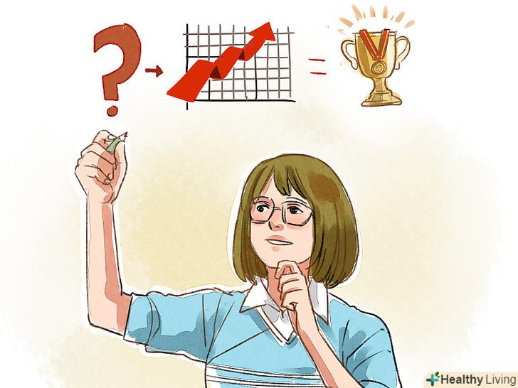 Зміцнюйте віру в свої сили.вона переконує вас у здатності впливати на ситуацію і досягати поставлених цілей. Якщо ви сумніваєтеся в собі, то зміцнюйте віру в свої сили. Використовуйте наступні поради:[15][16]- зосередьтеся на невеликих цілях і досягненнях. Якщо ставити тільки великі цілі і визнавати лише великі досягнення, то ви ризикуєте підірвати віру в себе. Зосередьтеся на невеликих досяжних цілях і визнайте навіть незначний успіх. Наприклад, поставте за мету займатися фізкультурою чотири рази на тиждень по 30 хвилин. Після кожного тренування хваліть себе за завзятість.