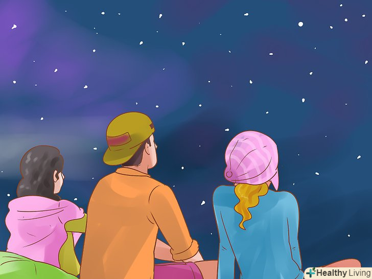 СпостерігайтеЗа зірками вночі, щоб вивчати сузір'я.не забудьте використовувати засіб від комах. Виберіть безхмарну ніч і вимкніть всі ліхтарі на вулиці. Якщо ви живете в місті, то краще йти в парк або інше місце без ліхтарів.[11]- Є чимало додатків, які підкажуть вам назви сузір'їв – Зоряна карта, Атлас зоряного неба, Sky Map.