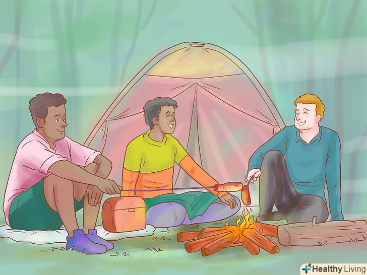 Організуйте наметовий табір на задньому дворі, щоб піти від звичних декорацій.Запросіть друзів, поставте намети і візьміть спальні мішки. Розповідайте страшилки, грайте в ігри, фотографуйтеся і ласуйте приготованими на вогні смаколиками на зразок зефіру і сосисок.[12]- Слухайте музику, дивіться фільм, розпаліть багаття і займайтеся іншими веселими справами.