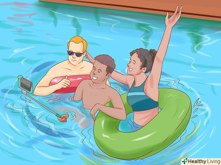Ходіть в басейн або на озеро, щоб плавати і спілкуватися з друзями.Візьміть плавальний костюм, рушник, сонцезахисний крем, трохи грошей на їжу або інші речі, які можуть вам знадобитися. Обов'язково вибирайте пляж або басейн з рятувальниками, особливо якщо ви погано плаваєте або йдете з маленькими дітьми.[14]- Не забувайте повторно наносити захисний крем протягом дня, щоб захистити шкіру від сонячних променів.