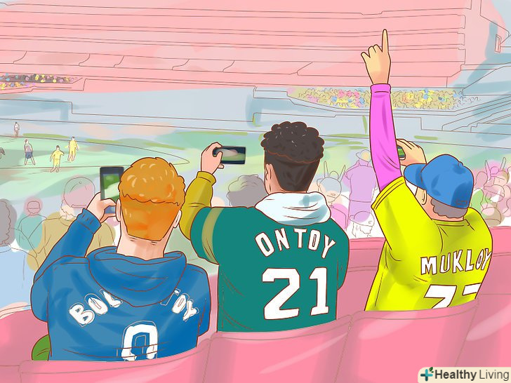 Підтримуйте місцеву спортивну команду на стадіоні.ходіть на матчі в зручному взутті і футболці улюбленої команди (не забувайте про сонцезахисний крем). Порадуйте себе їжею в перерві і підтримуйте команду разом у всьому стадіоном.[16]- Пам'ятайте про безпеку: не приймайте їжу, напої і не йдіть з незнайомцями.