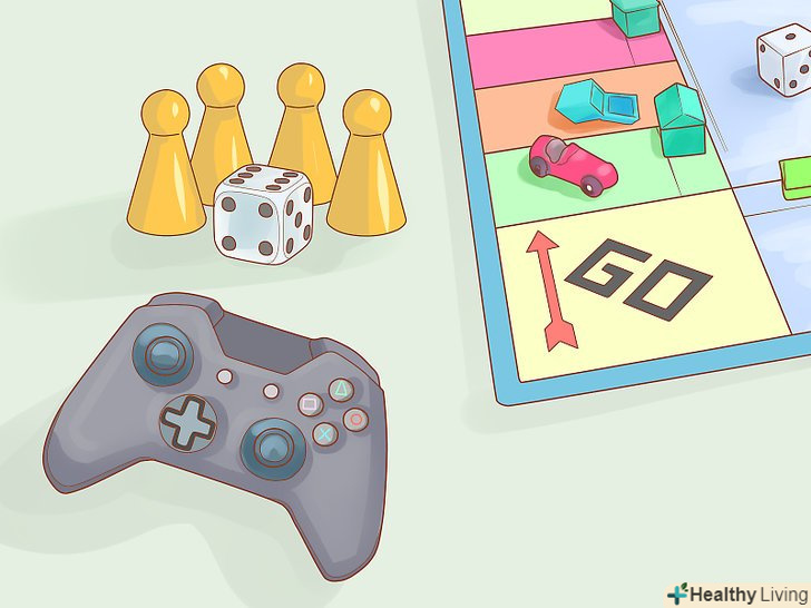 Проведіть ігровий марафон і змагайтеся з друзями.відеоігри, настільні або карткові ігри стануть відмінним розвагою в погану погоду, коли потрібно зайняти себе в приміщенні. Не забудьте підготувати ласощі та напої для друзів.[3]- Грайте в одну гру весь день або чергуйте різні ігри в залежності від уподобань.