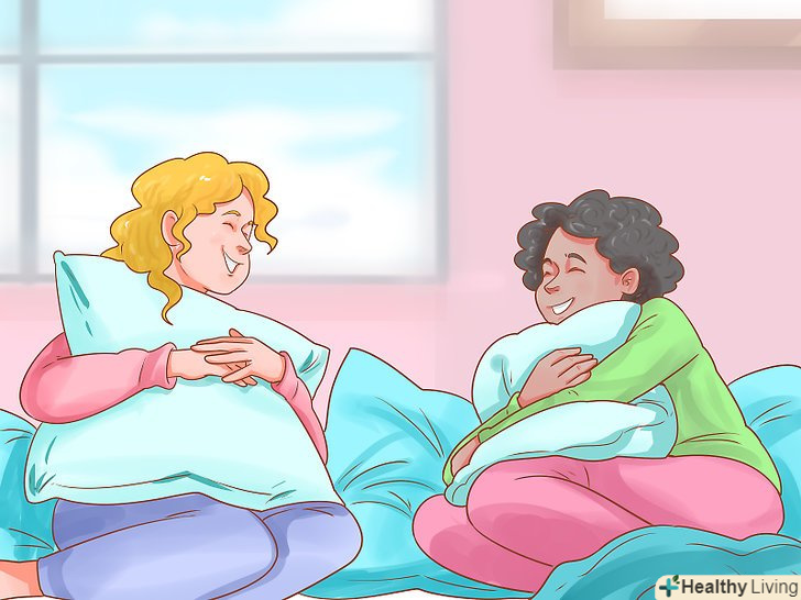 Запросіть друзівЗ ночівлею і дивіться фільми, грайте в ігри, спілкуйтеся.запитайте дозволу у батьків і дізнайтеся, скільки друзів можна запросити. Приготуйте частування для гостей, виберіть кілька ігор і фільмів, які можна дивитися пізно вночі.[4]- Влаштуйте вечір танців, переодягань, грайте у відеоігри, фотографуйтеся, грайте в різні ігри на зразок правда чи дія, розповідайте страшні історії або просто спілкуйтеся на будь-які теми.