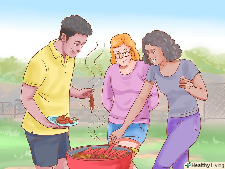 Запросіть друзів на пікнік і приготуйте страви на грилі.якщо ви не знаєте, як використовувати гриль, то вам буде потрібна допомога. Можна пригощати друзів гамбургерами, хот-догами, сосисками на грилі, чіпсами, фруктами, овочами та напоями або придумати будь-яке інше меню на свій смак. Якщо у вас немає гриля, то можна орендувати столик з грилем в місцях для пікніків і відпочинку на природі.[7]- Попросіть друзів принести свою улюблені частування, щоб усім було смачно і весело.