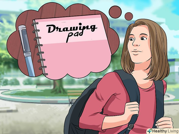 Завжди носіть з собою матеріали для малювання.як мінімум, тримайте при собі блокнот і олівець (або ручку), щоб ви завжди могли замалювати те, що вам сподобається (або викличе у вас стрес). По ходу дня робіть начерки ідей для своїх майбутніх малюнків. Навіть думка про те, що незабаром ви займетеся малюванням, буде заспокоювати вас і посилить ваше задоволення, коли ви, нарешті, зможете помалювати!