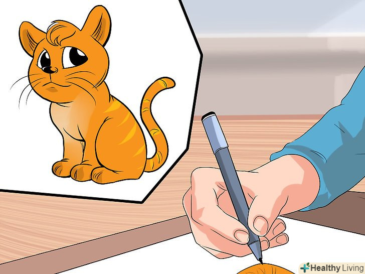 Намалюйте щось таке, що вас заспокоює.Сам малюнок не настільки важливий, як те, які саме асоціації він у вас викликає. Якщо ви знаєте, що вас заспокоює вид гір або дерев, спробуйте їх намалювати. Також заспокійливим впливом можуть володіти і нижчезазначені ідеї для малюнків:- Ваш справжній або уявний вихованець;