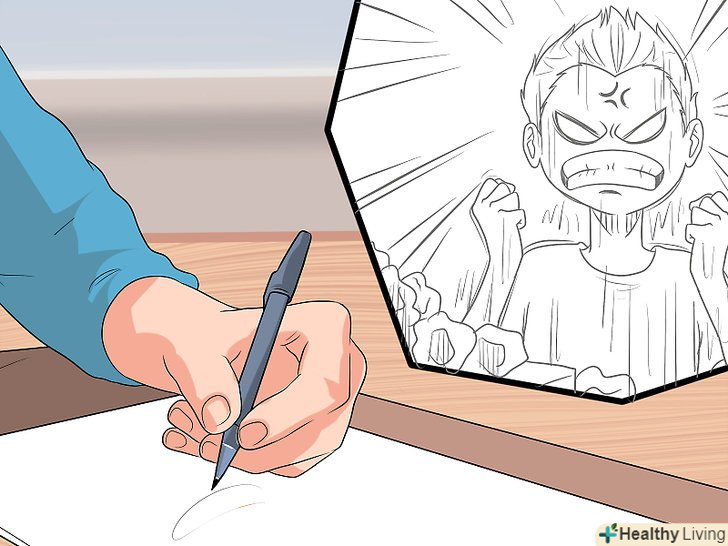 Намалюйте саме те, що викликає у вас стрес.постарайтеся зобразити джерело стресу максимально детально, не стримуйте себе. Намалюйте фактичну або образну картину, яка відображатиме причини вашого стресу. Створення мальованого аналога своїх проблем є дієвим способом вираження власних почуттів, який допоможе вам сконцентруватися і знайти концептуальне рішення наявної проблеми.[7]- Знищіть Мальований аналог вашого стресу. Замалюйте малюнок або розірвіть його на найдрібніші шматочки. Знищте малюнок саме власними руками, щоб отримати від цієї дії максимальне задоволення.