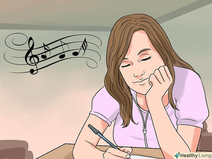 Прослуховуйте музику під час малювання.музика має дуже потужний вплив на настрій, так як вона допомагає людині розслабитися і надихнутися. Уважно поставтеся до підбору музики. М'яка і ритмічна музика (бажано без слів) особливо ефективно заспокоює розбурханий розум.- Змінюйте список відтворення під власний настрій. Більш швидка музика здатна надати вам бадьорості, якщо тільки при цьому вона не буде відволікати вас і викликати у вас дискомфорт.