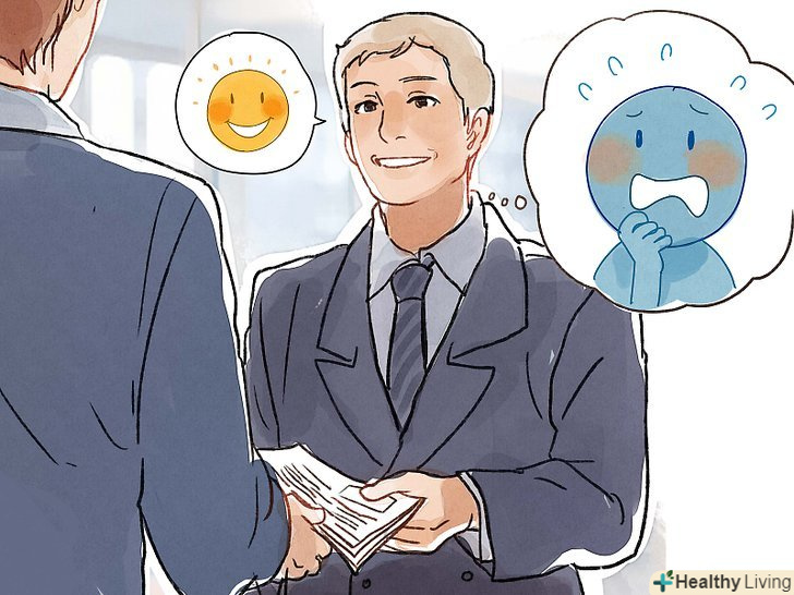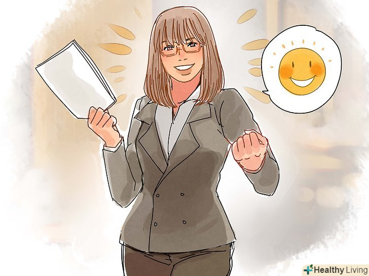 Підходьте до робочих завдань з позитивним настроєм.якщо ви переживаєте з приводу презентації або іншої ситуації на роботі, просто налаштуйтеся позитивно. Дуже часто, коли ви переживаєте з приводу ситуації, ви підходите до неї з негативними, неспокійними думками. Боріться з цим за допомогою позитивного настрою.[3]- Наприклад, в ранок перед важливою презентацією скажіть собі: "ти багато працював над цим. Ти абсолютно готовий. Ти відмінно з усім впораєшся". Це допоможе вам відчути більше впевненості з приводу ситуації, замість того щоб переживати через неї.