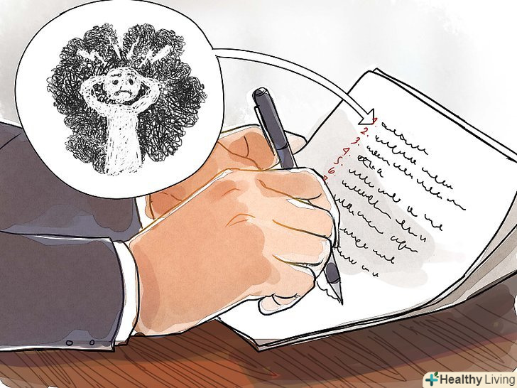 Складіть список тривог.Один із способів перестати думати про свої тривоги під час роботи — записати все на папері. Кожен раз, коли якась проблема спадає на думку, заносите її в свій спеціальний список. І як тільки ви запишете тривогу на папері, проженете її зі своїх думок, поволнуетесь про це пізніше.- Даний список може послужити свого роду методом емоційного очищення - він допоможе вам подолати тривогу, так як ви побачите її викладеної на папері.[2]