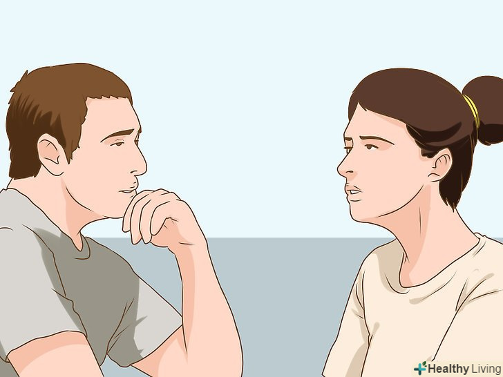 Порадьтеся з друзями, родичами або однолітками.Поговоріть з близькими друзями або членами сім'ї про причину вашого стресу. Ті, хто має більше досвіду роботи, навчання чи життя, ймовірно, мали подібні проблеми. Можливо, ви знаєте когось, хто, подібно до вас, відчував хронічний стрес і хто зможе запропонувати деякі поради. [17]- Якщо ви, наприклад, зверніться до одного то можете сказати: "Міша, можу я розповісти тобі про мою ситуацію на роботі? Мене це дуже напружує, і я думаю, що ти зможеш дати мені парочку корисних порад».