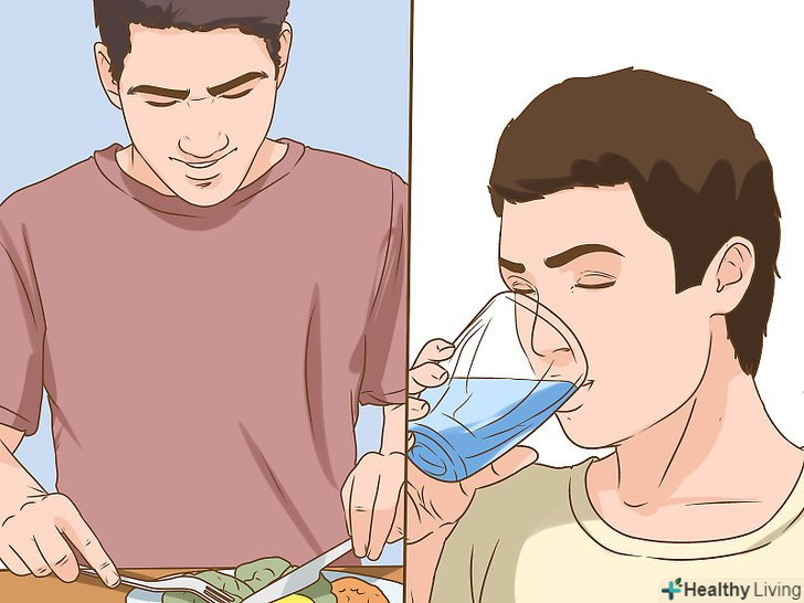 Дотримуйтеся здорового харчування. здорова дієта може допомогти вам поліпшити свій сон, підвищити енергію і настрій. Вивчіть свій поточний раціон і подивіться, де ви можете внести невеликі зміни.[11]- Пийте воду. Вода допомагає організму позбутися від токсинів і підвищує рівень енергії. Регулярно наповнюйте пляшку водою протягом дня.[12]