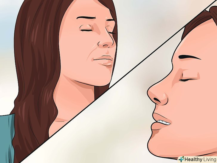 Закрийте очі або дивіться на стіну.деякі медитації важко виконувати з відкритими очима, але, медитуючи з закритими очима, людина ризикує просто-напросто заснути.[1]- Отже, розглянемо варіант, при якому ви дивитеся в стіну, на якій нічого немає. Спробуйте не просто дивитися на стіну, а пронесіть ваш погляд як би крізь неї. Не забувайте моргати.