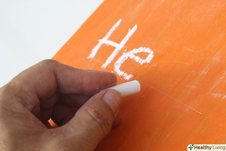 Підготуйте поверхню до експлуатації, якщо збираєтеся використовувати її в якості крейдяної дошки.якщо ви плануєте використовувати пофарбовану поверхню для письма крейдою, її необхідно піддати первинній обробці. Щоб обробити крейдяну дошку перед експлуатацією, просто повністю зафарбуйте її поверхню крейдою, а потім зітріть крейду сухою ганчіркою.[13]- Пропустіть цей крок, якщо ви фарбували меблі, на якій не збираєтеся малювати крейдою.