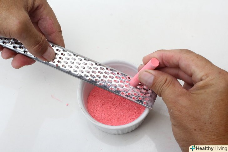 Подрібніть крейду в порошок.найпростіше це зробити на звичайній тертці.[1] якщо у вас під рукою немає терки, складіть крейду в пакет, а потім потовчіть його молотком в дрібний пилоподібний порошок.- Якщо ви вирішили скористатися теркою, це не повинна бути терка, яку Ви все ще використовуєте для приготування їжі. Візьміть для цієї мети окрему тертку.