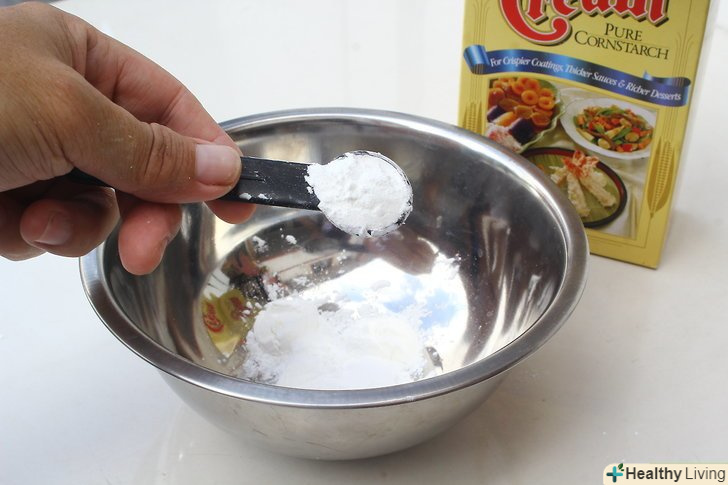 Насипте в миску 6 столових ложок (близько 45 г) кукурудзяного крохмалю.даний рецепт відмінно підходить для виготовлення змивається тротуарної фарби.[3] але не рекомендується застосовувати цю фарбу для фарбування меблів або саморобних дощок для письма крейдою.- Переконайтеся в тому, що Ви купили саме кукурудзяний крохмаль, ане кукурудзяне борошно.