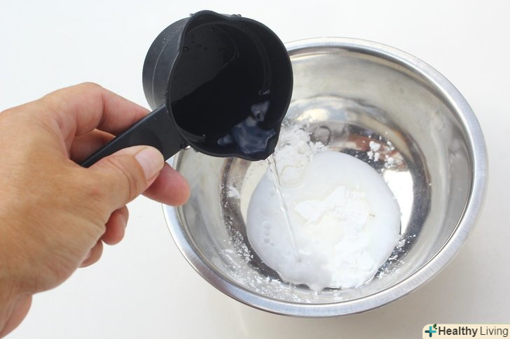 Змішайте затірку з водою.насипте 2 столові ложки (близько 30 г) безпіщаної затірки в ємність для змішування. Змішайте затірку з 1 столовою ложкою (15 мл) холодної води. Після змішування у вас повинно вийти речовина однорідної консистенції.[7]- Ємність для змішування повинна бути досить великою-об'ємом не менше 240 мл.