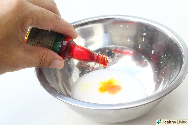 Додайте харчовий барвник.для приготування фарби можна взяти рідкий або гелеподібний харчовий барвник. Також можна скористатися рідкими акварельними фарбами. В якому обсязі додавати барвники, вирішувати тільки вам. Чим більше барвника ви додасте, тим темніше і соковитіше вийде колір фарби. Почніть з декількох крапель і подивіться, наскільки вас задовольнить отриманий результат.[5]