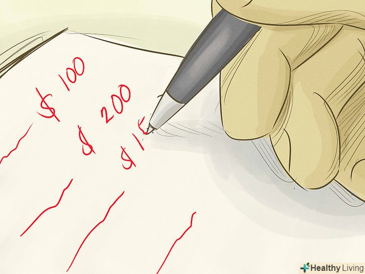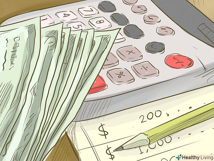 Створіть бюджет. На аркуші або в додатку визначте, скільки відсотків ваших грошей йдуть на важливі речі (оплата, рахунки). Також використовуйте ваші витрати з минулого місяця, щоб дізнатися, скільки ви витрачаєте на бензин і їжу. Визначте, скільки у вас залишається на вільні витрати.[9]