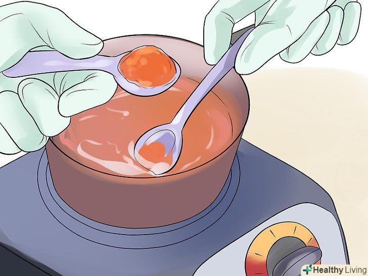 Змішайте фарбувальний порошок.додайте 14 г кислотного барвника будь-якого кольору. Розмішуйте його інертною ложкою до повного розчинення порошку.[3]- Вам буде потрібно від 10 до 19 г фарбувального порошку на кожні 450 г ваги кістки для фарбування.