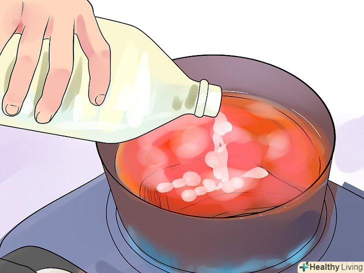 Додайте трохи оцту.додайте в фарбувальну ванну чверть склянки (60 мл) оцту. Розмішавши.- Кислотний барвник найкраще діє в поєднанні з кислотою на зразок оцтової.