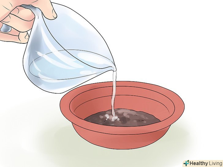 Додайте воду в порошок з жолудів.помістіть подрібнені жолуді в інертну ємність невеликого або середнього розміру. Додайте в порошок 1 склянку (250 мл) води кімнатної температури. Розмішайте порошок пластиковою ложкою.- Зверніть увагу: рівень води повинен бути досить високим, щоб він покривав кістку, яку ви зібралися фарбувати. Якщо фарби буде мало, то додавайте шість мелених жолудів або один мелений дубовий галл на кожні півсклянки (125 мл) води.