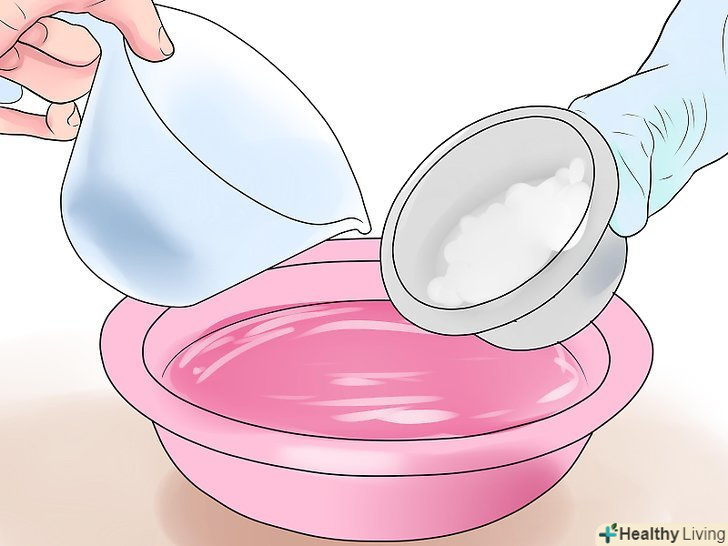 Підготуйте розчин кальцинованої соди.змішайте 1/4 склянки (60 мл) кальцинованої соди і 1 літр води кімнатної температури. Розмішуйте до повного розчинення кальцинованої соди.- Перед створенням розчину кальцинованої соди перевірте використовуваний барвник. Деякі барвники можуть вже містити кальциновану соду, а в такому випадку приготування розчину не потрібно.[5]