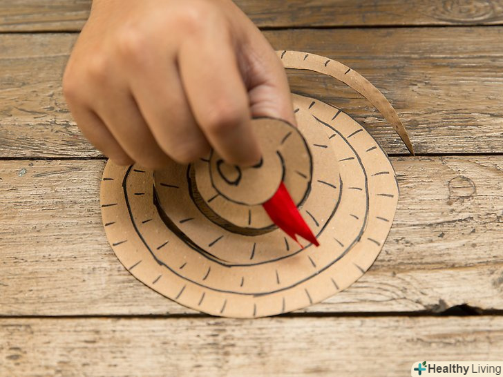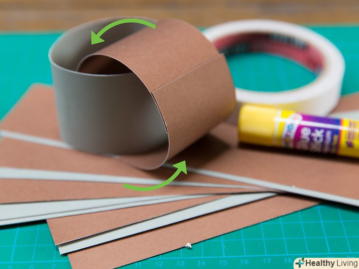 Зробіть зі смуги кільце і склейте краю.візьміть смужку картону і вирівняйте два краї. Вони повинні розташовуватися трохи внахлест (на 2,5 сантиметра). Використовуйте клей-олівець, щоб зафіксувати кінці. Також можна використовувати скотч або степлер.- Не використовуйте канцелярський клей, оскільки він досить довго сохне і за цей час змійка розпадеться на частини.